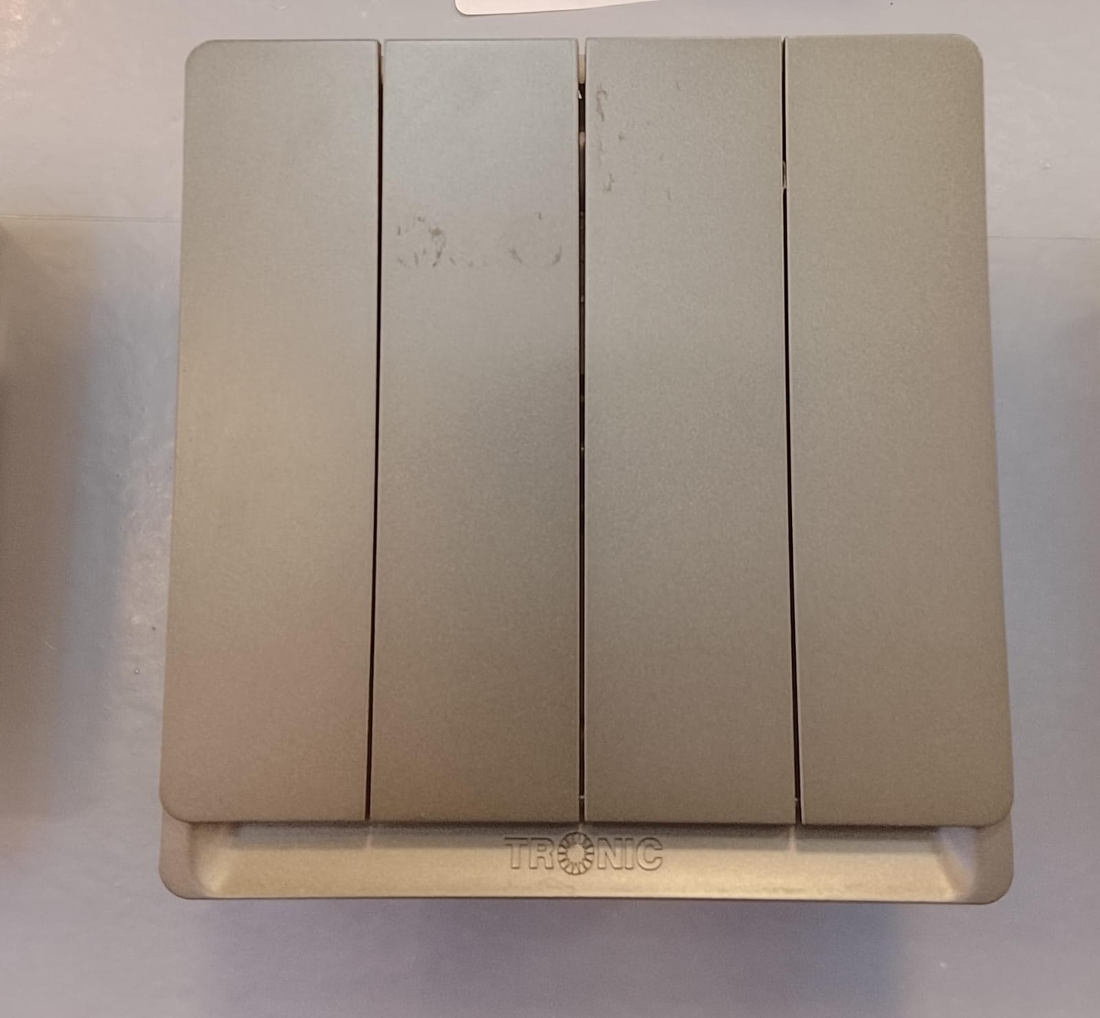 This is a 4-gang wall switch, designed to control four different electrical circuits independently, making it highly versatile for larger spaces.