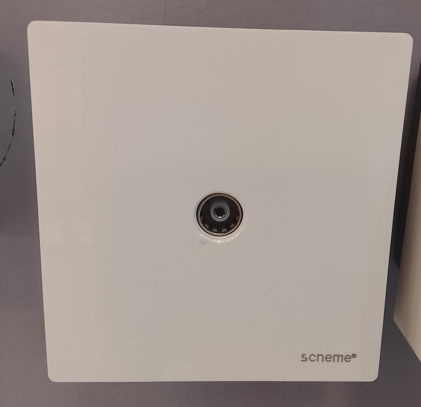 Elegant TV aerial outlet with a sleek glass faceplate design. Provides a secure and reliable connection for television coaxial cables.