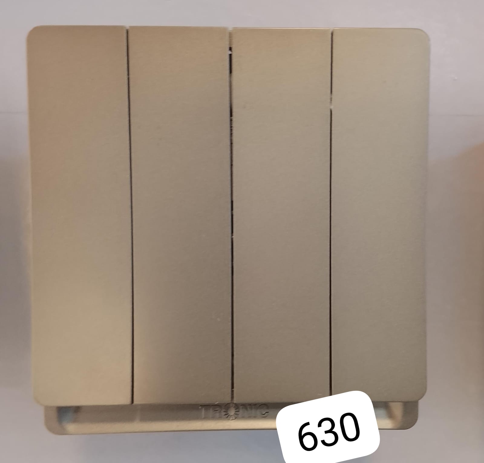 Stylish three-gang wall switch with a metallic champagne finish, designed for modern interiors. Smooth operation with durable build.