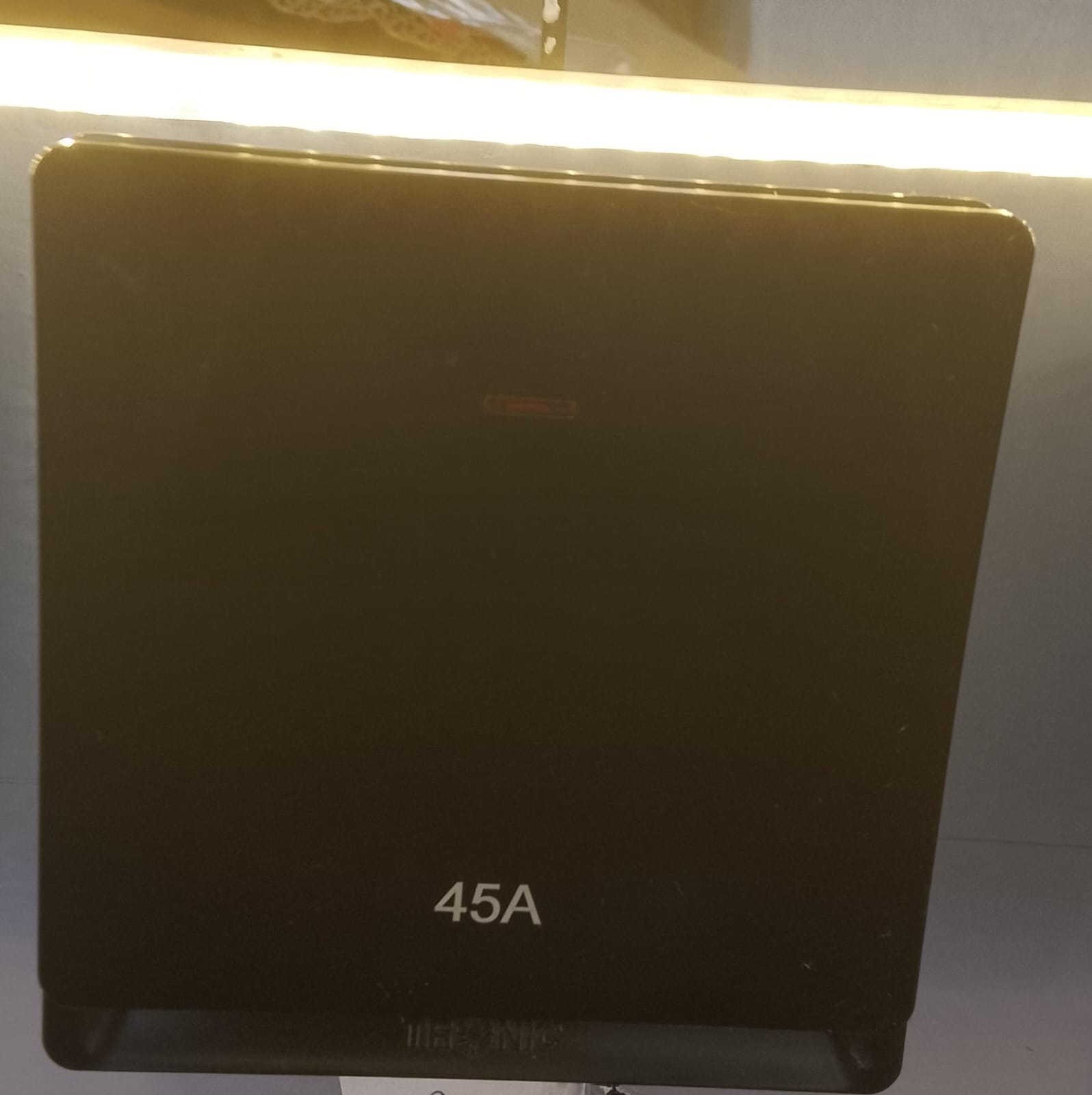 Heavy-duty 45 Amp switch designed for controlling high-power kitchen appliances such as electric cookers, ovens, and water heaters. -