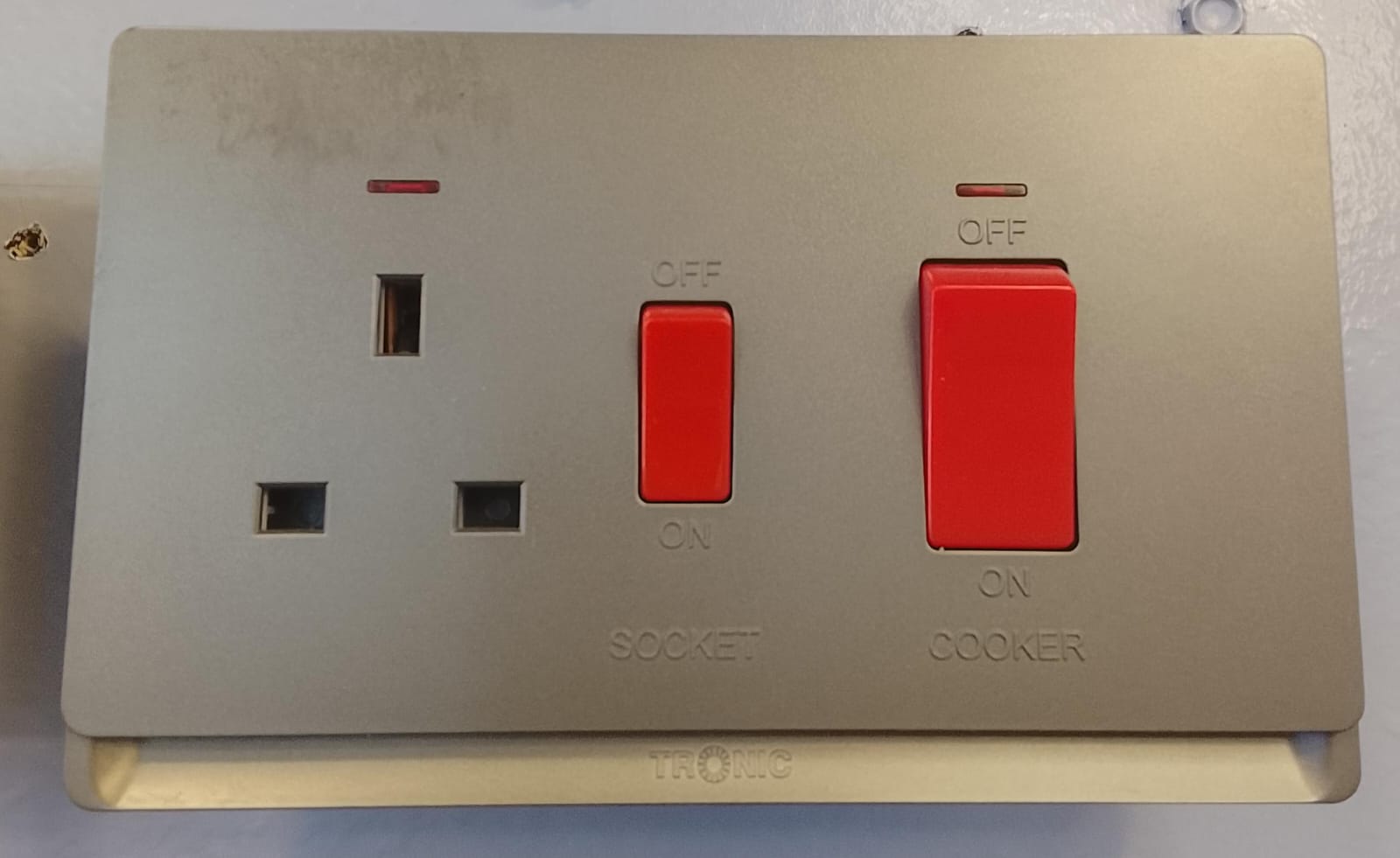 Both the socket and the cooker switch have independent ON/OFF controls.